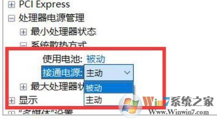 第二步选择更改高级电源设置,进入电源选项后,用滑块一直往下滑,然后就会看到一个处理器电源管理,下面有一个系统散热方式,在下面的使用电池和接通电源都改成被动就可以了。
