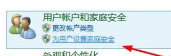 2、然后点击“用户账户和家庭安全”——“为用户设置家庭安全”,如图: