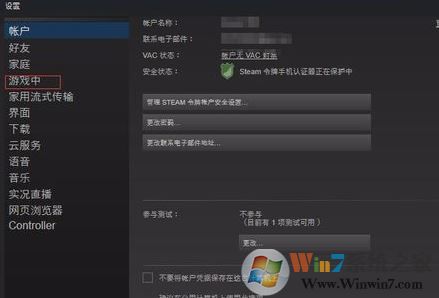 2、在设置界面 选择“游戏中”,如图: