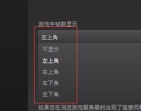 3、进入“游戏中”设置界面,在图中圈出的位置可以设置FPS显示位置和对比颜色,如图: