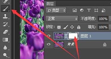 第一步:先点选右边的框,然后再选择画笔工具(或先画笔后蒙版框都可以),如图: