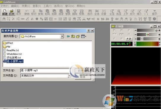 单击“打开”按钮,或者“文件”——“打开”,选择一个声音文件