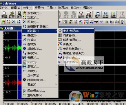 1、选择“效果”——“滤波器”——“均衡器”,打开GoldWave的10段参数均衡器。主要是合理的改善音频文件的频率结构,达到较理想的声音效果。