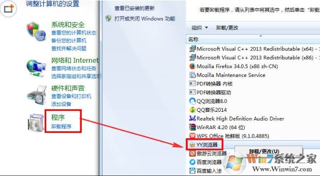 方法二:点击开始==控制面板==“卸载程序”==右击点击“卸载更改”,然后进一步卸载即可。