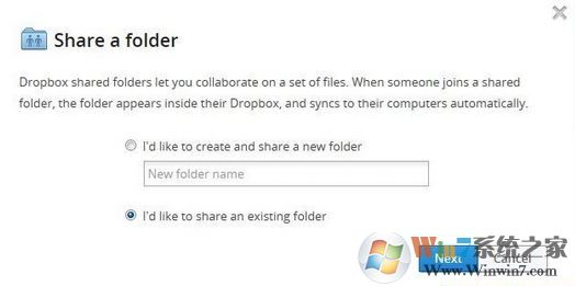 2、如果选择共享现有的文件夹,点下一步会让你选择Dropbox上已经有的文件夹。