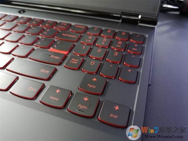 C面,拯救者Y7000采用了全键盘设计,比较特别的是,小键盘区被放置到了上下左右键的正上方,两者合并到了一起,虽然小键盘因此省去了Enter键,但上下左右键却保留了正常尺寸。