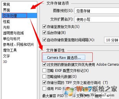 5、选择---文件处理---Camera Raw 首选项,如图: