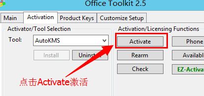 4、当安装KMS成功之后点击 "Activate"按钮开始激活;
