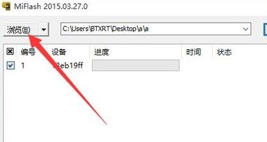 3、接着运行“MiFlash”工具,点击左上角的“浏览”按钮;