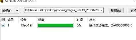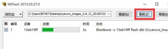 7、最后点击“刷机”按钮,此时“MiFlash”工具将自动进行刷机过程;