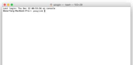 4、打开终端后,可看到一个白色的小窗口,并显示相关的字符,以及闪光的光标就成功的打开啦~