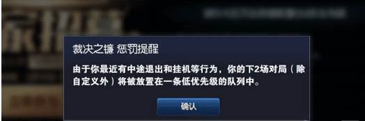 3.对局结束后玩家返回大厅时会提示玩家剩余惩罚场数。