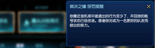 4.玩家完成5场惩罚时的裁决之镰警告。