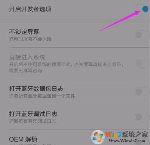 5.之后我们就会看到在设置里面多出了一个开发者选项的按钮,我们把该选项打开;