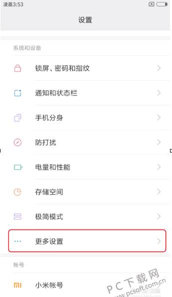 4.返回到之前的设置界面,点击更多设置,如下图红框处;