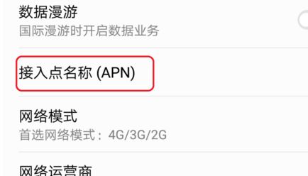 2、打开网络设置界面后,我们可以看到一个“接入点名称(APN)”,这就是我们要找的设置项了,选择此项