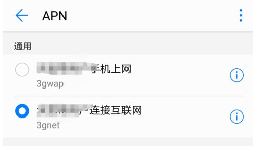 3、在打开的的“APN”页面,会看到移动网络默认设置项,包括通用类中的手机上网的3gwap、链接互联网的3gnet以及彩信的设置,如图: