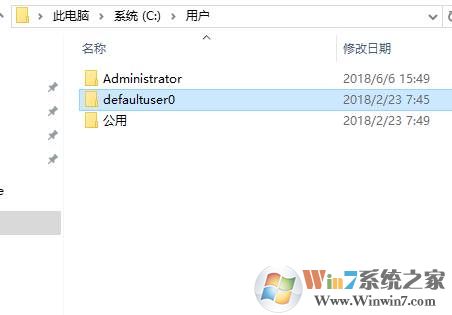 2、删除defaultuser0文件夹,位置C:\用户\