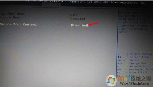 2、进入Secure Boot menu,将Secure Boot Control设置为Disabled;