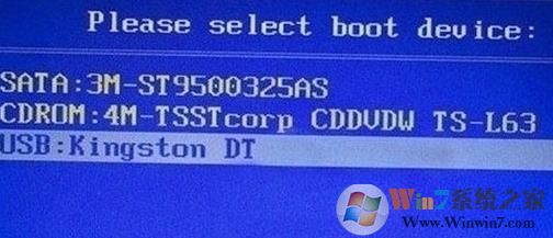 5、再按下ESC键或F12键,就可以发现有U盘选项了。