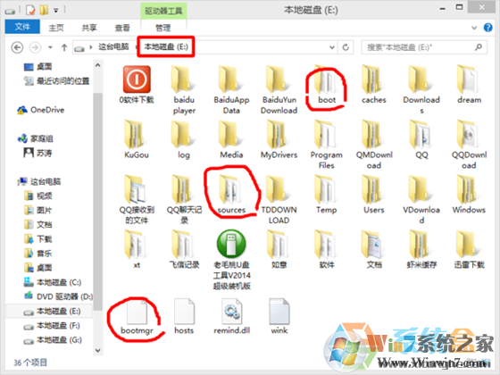 2、将映像解压到C盘外的某盘符的根目录,如E盘根目录;