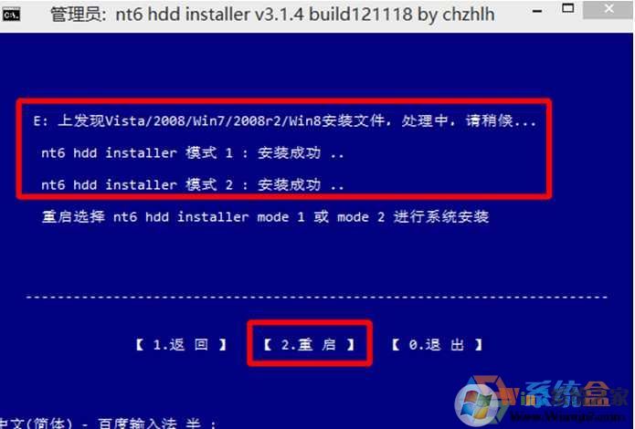 6、提示:安装成功!击【重启】;