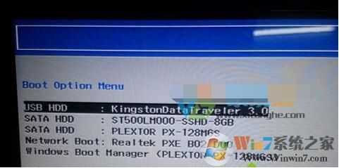 4、然后插入U盘启动盘,在计算机重新启动至LenovoLOGO画面时,并按下笔记本键盘上的Fn键+F12键进入笔记本的引导设置界面(或者请您在计算机重新启动至Lenovo LOGO画面时按下笔记本的电源开关关闭计算机之后,按下一键恢复按钮开机,按下键盘上按键选择启动菜单中的Boot Menu项目之后按下回车键进入引导设置界面,然后选择U盘启动(一般为USB HDD 开头)