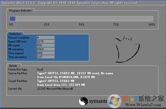 7、GHOST回复过程会持续几分钟,等待几分钟就可以了。