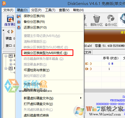 4、删除分区后,装换硬盘分区表类型 为 MBR 格式,同样还是从“硬盘”——“转换分区表类型为MBR格式”,然后保存更改(以下为图示,此时该项为可点,如不可点说明已经转换好了。)(Win11系统之家www.xiuchufang.com整理)