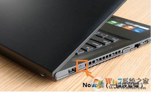 1、在笔记本关机状态下使用圆珠笔等东西,按下笔记本侧面的NOVO按钮;