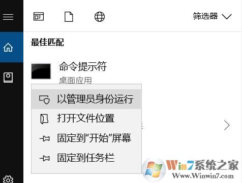 6、复制完毕,点击开始菜单输入cmd,这时右键单击“命令提示符”,选择“以管理员身份运行”,如图: