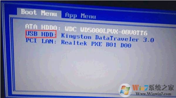 5、选择USB开头的或U盘名,U盘启动,然后进入U盘Pe系统即可;