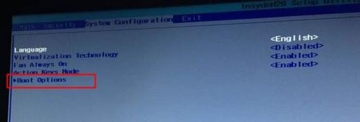 2、移动键盘右键头到System Configuration下,选择Boot Options,按回车键进入设置;