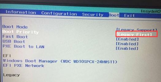 5、再把Boot Priority设置成Legacy First,按F10弹出窗口选择yes回车;