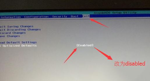 2、转到Exit,把OS Optimized Defaults设置为Disabled或Other OS;