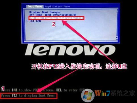 5、保存设置后自动重启进入LOGO画面时,一直按F12,选择U盘启动,如图: