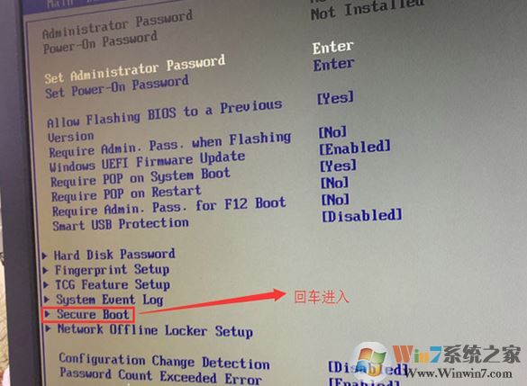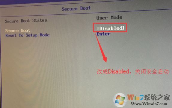 1、开机一直按F2或(FN+F2)进入BIOS,按→方向键切换到Security,选择Secure Boot回车设置成Disabled,如图: