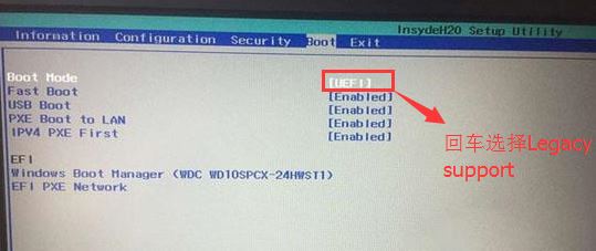 4、切换到Boot,把Boot Mode从UEFI改成Legacy Support,如截图: