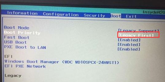 5、再把Boot Priority设置成Legacy First,按F10弹出窗口选择yes回车,如截图: