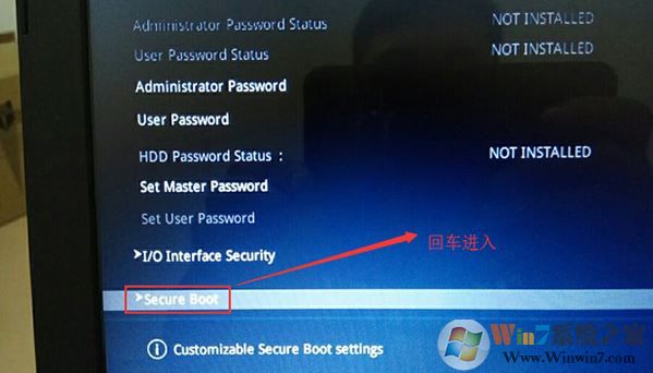 1、重启笔记本按esc进入BIOS设置,然后按F7进入高级模式,按→方向键移动到Security,选择Secure Boot,然后回车进入把Secure Boot control选enabled改为disabled关闭安全启动,然后按F10保存重启;