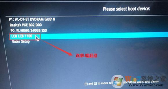 3、插入U盘启动盘,重启按ESC选择识别到U盘启动项,回车;