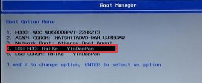 5、插入U盘启动盘,重启时不停的按下f12,打开Boot Manager,选择USB HDD回车从U盘启动