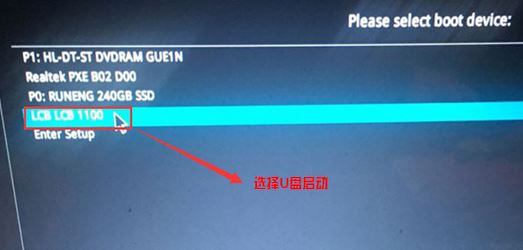 4、插入U盘启动盘,重启按ESC选择识别到U盘启动项