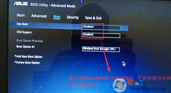 华硕灵耀S14UA8250装win7步骤二:修改BIOS