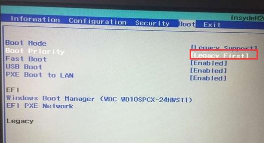 5、再把Boot Priority设置成Legacy First,按F10弹出窗口选择yes回车;