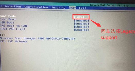 4、切换到Boot,把Boot Mode从UEFI改成Legacy Support;