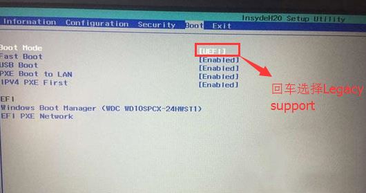 4、切换到Boot,把Boot Mode从UEFI改成Legacy Support;