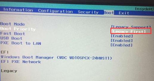 5、再把Boot Priority设置成Legacy First,按F10弹出窗口选择yes回车;