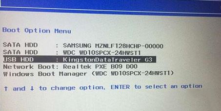 6、插入制作好的U盘启动盘,重启按F12或FN+F12调出启动管理对话框,选择USB HDD识别到U盘启动进入PE