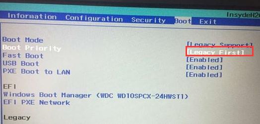 5、再把Boot Priority设置成Legacy First,按F10弹出窗口选择yes回车;